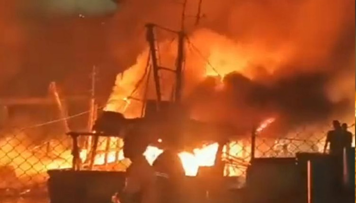 The senior police officer said diesel containers and gas cylinders on the boats added fuel to the fire and the entire jetty area was up in flames. Fishermen suspect some criminals set the boats on fire. There is also suspicion that the fire was triggered by a party in one of the boats.