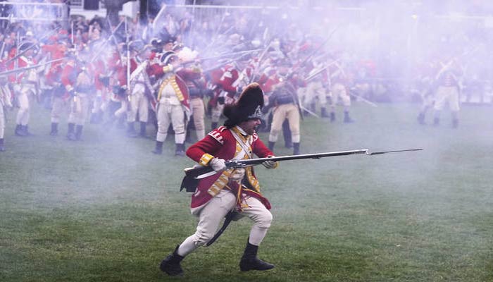 Tens of thousands of people came to Lexington, Massachusetts, just before dawn on Saturday to witness a reenactment of how the American Revolution began 250 years ago, with the blast of gunshot and a trail of colonial flair.