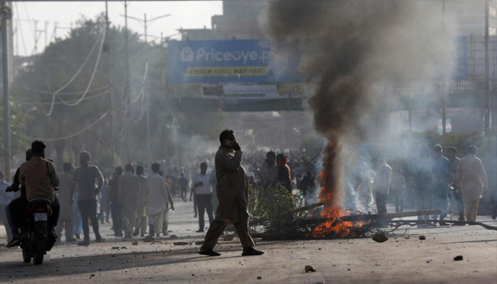 Gunshots echoed in parts of Pakistan, and black smoke billowed after places were set ablaze by Imran Khan’s supporters.