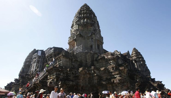 The centuries-old Angkor Wat temple complex in the northwestern province of Siem Reap. A Bangkok Airways flight from Thailand was the first to land, with 16 additional flights scheduled for the first day of operations at the Siem Reap-Angkor International Airport.