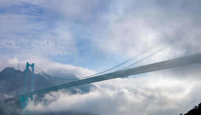 Built in three and a half years, the 2,890-metre-long bridge features a 1,420-metre main span, making it the tallest bridge globally and the largest-span bridge in a mountainous region. Drone footage shared by state media on September 28 captured vehicles smoothly crossing the breathtaking structure amid dramatic canyon scenery.