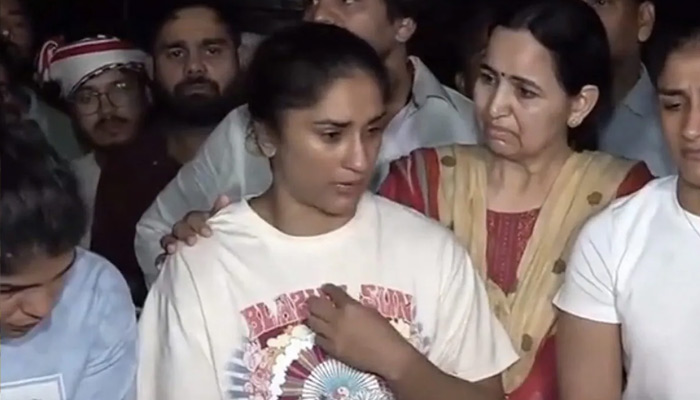 Vinesh Phogat, one of India’s top wrestlers along with Bajrang Punia and Sakshi Malik protesting against Wrestling Federation of India (WFI) chief Brij Bhushan Sharan Singh over.