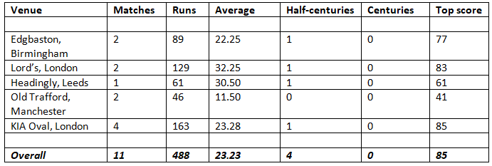 Warner will be fighting against numbers in the Ashes 2023. He doesn’t have great numbers at any of the five venues. He struggles at Old Trafford in Manchester, where he averages 11.50 with a top score of 41. Among other venues, Warner averages the best at the Lord’s (32.25). Warner has a highest score of 85 at the KIA Oval, but his average of 23.28 isn’t among the best given the standards he has set.