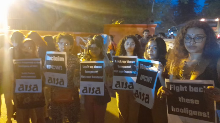 An All India Students’ Association (AISA) activist alleged that the men were heard chanting “Miranda, IP dono hamara (Miranda House and Indraprastha College both are ours)” and “Miranda nahi chhoda to IP bhi nahi chhodenge (We didn’t leave Miranda, we won’t leave IP either)”.
