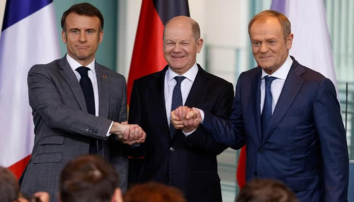 At a joint press conference in Berlin, Scholz, French President Emmanuel Macron and Polish Prime Minister Donald Tusk reaffirmed their support for Ukraine, whose ammunition-starved troops face their toughest battles since the early days of Russia’s invasion two years ago.
