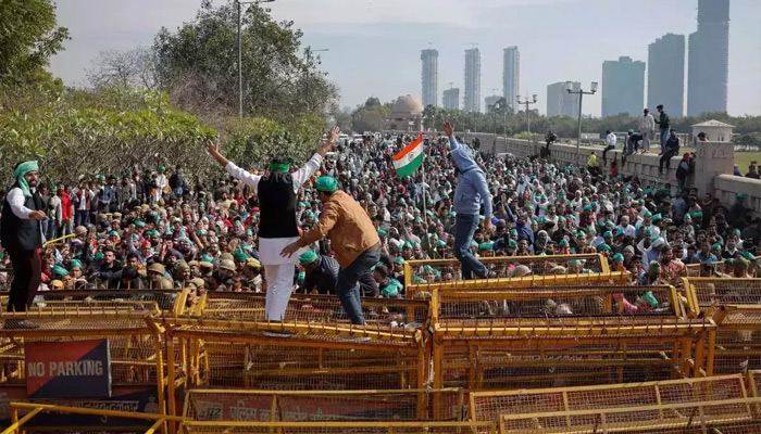Security measures have been ramped up across Delhi and the city’s borders have turned into veritable fortresses. Delhi Police Commissioner Sanjay Arora issued an order banning large gatherings until March 12, prohibiting rallies, tractor entry, and carrying of weapons or inflammable items.