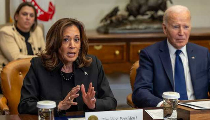 - Biden’s remark came as he handed over the meeting to Harris.