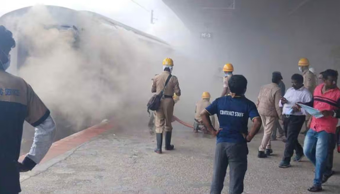 At its destination station, railway officials said. The fire broke out at around 7.30am, with smoke coming out from two coaches. Firefighting operations are underway at KSR Bengaluru Station and no injuries have been reported so far.