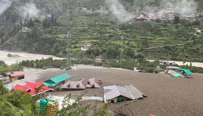 The cloudburst sent torrents of water, sludge, and debris crashing into Dharali — a tourist village near Gangotri. Visuals show half the settlement buried in rubble. The flash floods also swept down to Sukki village on the opposite slope, causing further devastation.