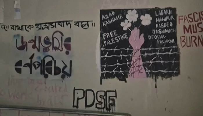 The Kolkata Police has filed an FIR against the supporters of the left-wing student organisation, Progressive Democratic Students’ Federation, for allegedly painting graffiti with slogans like ‘Azad Kashmir’ and ‘Free Palestine’ at Jadavpur University.