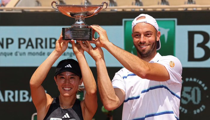 The pair rallied to beat Canada’s Bianca Andreescu and New Zealander Michael Venus 4-6 6-4 (10-6) in the final on Court Philippe Chatrier.