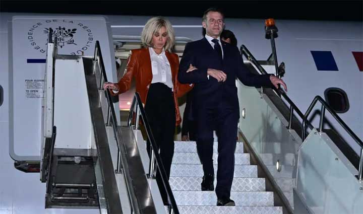 French President Emmanuel Macron arrived in Mumbai early Tuesday for a three-day visit to India, marking his fourth trip to the country since taking office in 2017. He was welcomed at the airport by Maharashtra Governor Acharya Devvrat, Chief Minister Devendra Fadnavis, and other dignitaries. Macron and his wife Brigitte Macron will meet Prime Minister Narendra Modi later on Tuesday.