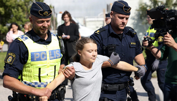 “Six people have been removed from the scene,” police said in a statement, adding they would be reported for “Disobeying police orders”, the same crime Thunberg had just been fined over.