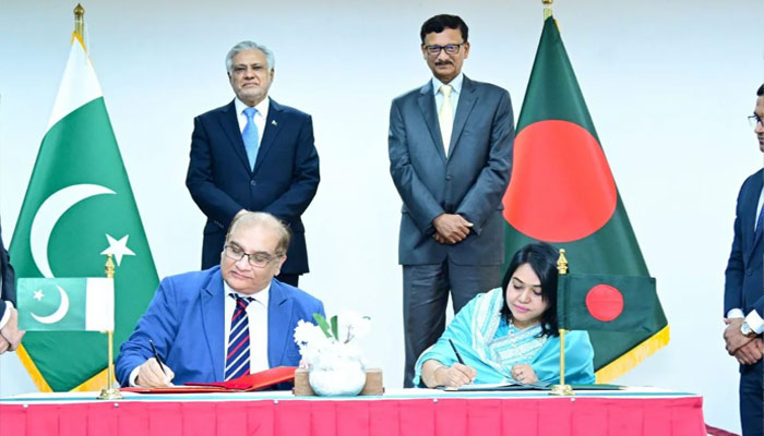 Bangladesh and Pakistan signed a series of trade and diplomatic agreements on Sunday during Pakistani Deputy Prime Minister and Foreign Minister Ishaq Dar’s visit to Dhaka — the first such high-level engagement in over a decade.