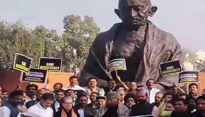 The Parliamentarians of the Indian National Developmental Inclusive Alliance (INDIA) bloc will today hold a march from Parliament House to Vijay Chowk in Delhi on the issue of suspension of Opposition MPs in both Rajya Sabha and Lok Sabha, reported ANI.