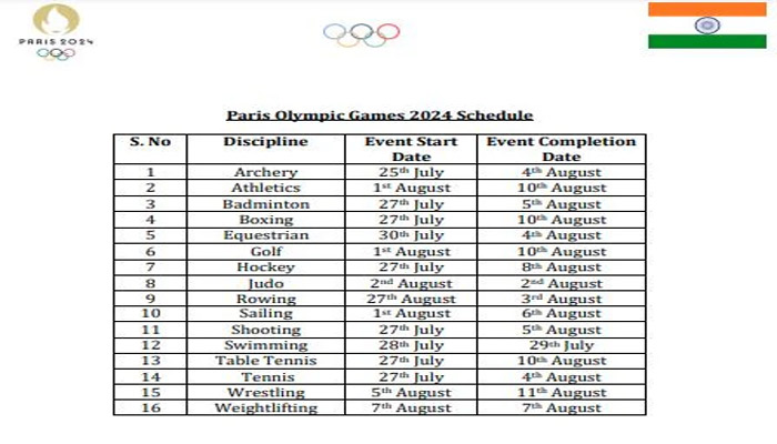 The IOA has also released India’s full schedule for the Paris Olympics. Here’s a look at the full schedule broken down sports and date-wise for ease of understanding.