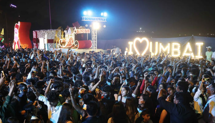 - Mumbai’s Juhu Beach, Chowpatty Beach, and Carter Road in Bandra were decorated and packed with people. People also gathered at Marine Drive to watch the fireworks.