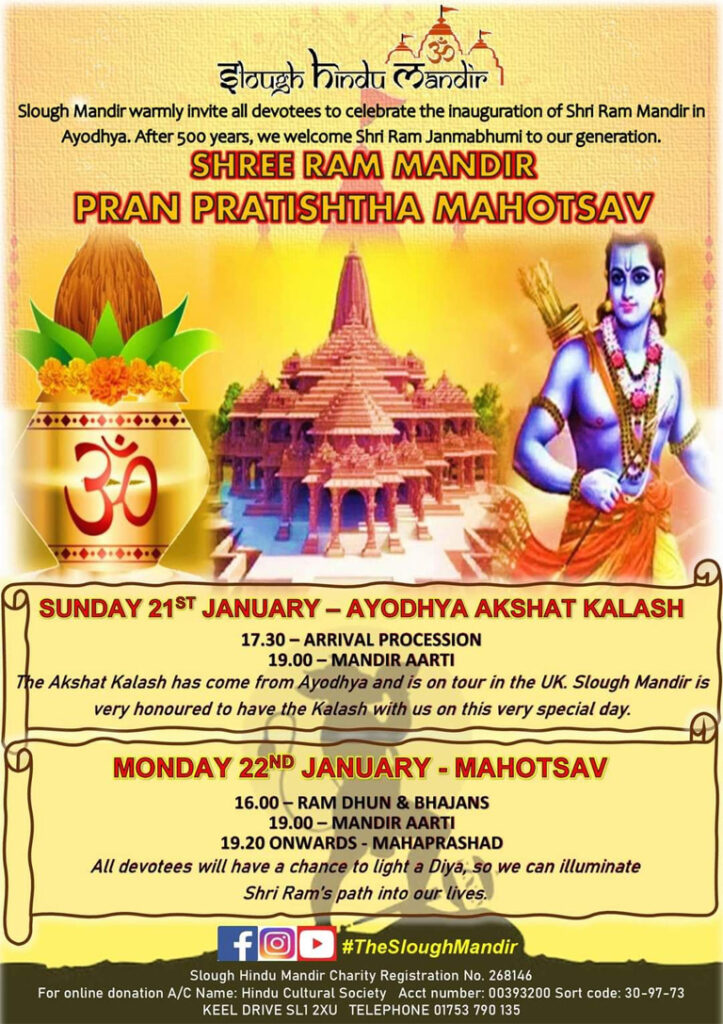 “The dedicated Indian Diaspora in the UK (IDUK Group) is leaving no stone unturned! 🛕🇬🇧 With 50-60 volunteers working tirelessly day and night, we’re gearing up for the grand Ram Mandir Celebration at Slough Hindu Mandir 🛕 on 22 Jan.