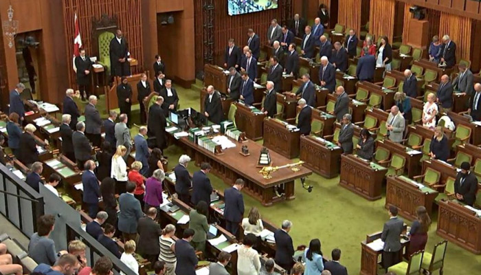 A video released by news agency IANS shows members of the Canadian parliament observing silence in the House of Commons. Speaker Greg Fergus starts the memorial by saying, “Following discussions among representatives of all parties in the House, I understand there is an agreement to observe a moment of silence in memory of Hardeep Singh Nijjar, assassinated in Surrey, British Columbia, one year ago today.”