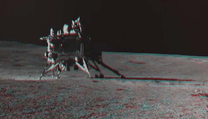 The Indian Space Research organisation on Tuesday put out a 3-dimensional ‘anaglyph’ image of the Chandrayaan-3 Vikram lander from the south pole of the Moon.