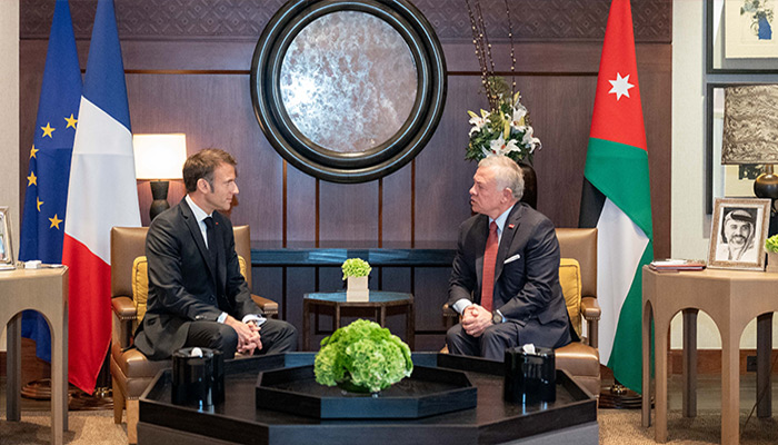 Also present at the meeting between the leaders were Jordan’s Deputy Prime Minister and Foreign Minister Ayman Safadi, France’s Ambassador to Jordan Alexis Le Cour Grandmaison, and other officials from both countries.