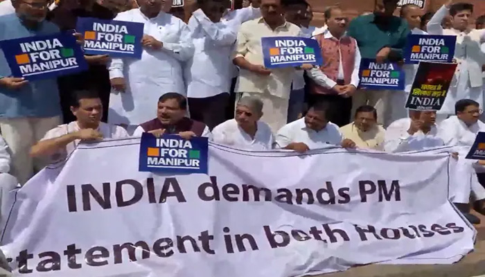 MPs from the Opposition alliance INDIA have also gathered at the Gandhi statue, demanding Prime Minister Narendra Modi speak on the situation in Manipur. Top BJP leaders had earlier said Union Home Minister Amit Shah, who visited the northeastern state once amid the raging violence, would address the Parliament on the issue.