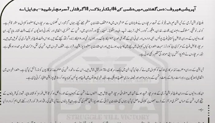 BLA का यह भी दावा है कि ऑपरेशन के दौरान 30 से अधिक सरकारी इमारतों, जिनमें बैंक, सरकारी कार्यालय और जेलें शामिल हैं, को नुकसान पहुंचाया गया है। इसके अलावा 23 से अधिक वाहनों को जलाए जाने की बात कही गई है।