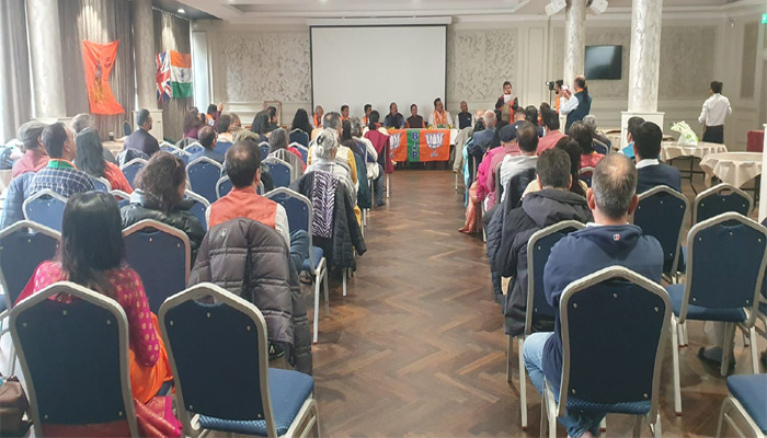 The evening commenced with the auspicious ceremony of ‘Deep Prajvalan’ and the warm felicitation of distinguished guests. Dr. Anand Arya, Vice President of OFBJPUK, delivered an impassioned address highlighting the exemplary governance of the BJP government. Sri Suresh Mangalgiri, General Secretary of OFBJPUK, shed light on the transformative schemes initiated by the Modi government over the past decade, OFBJP UK President Kuldeep Shekhawat sent blessings from India.