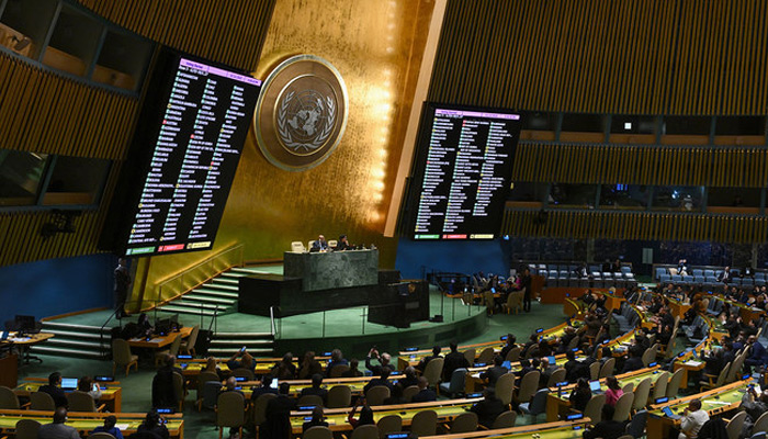 An extremely crowded meeting of the UN General Assembly echoed to the sound of applause on Tuesday after an overwhelming majority of 153 member nations voted.