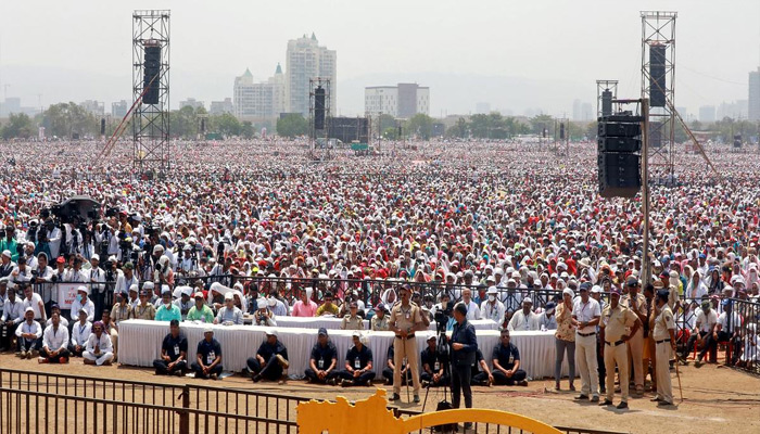 The ground was packed with people and equipped with audio/video facilities for followers of Shree Sadasya (Dharmadhikari’s organisation) to witness the function. The seating arrangement for the attendees was made in the open and there was no shed, reported PTI.