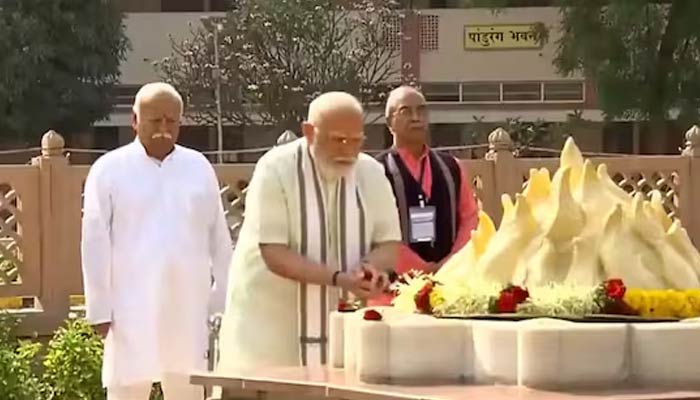 RSS chief Mohan Bhagwat was present during PM Modi’s visit to the Smruti Mandir in Reshimbagh, the administrative headquarters of the RSS.