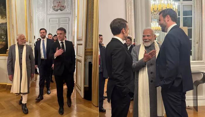 Prime Minister Narendra Modi, US Vice President JD Vance and French President Emmanuel Macron on Monday (local time) interacted on the sidelines of a dinner hosted by the French President in Paris’ Elysee Palace.