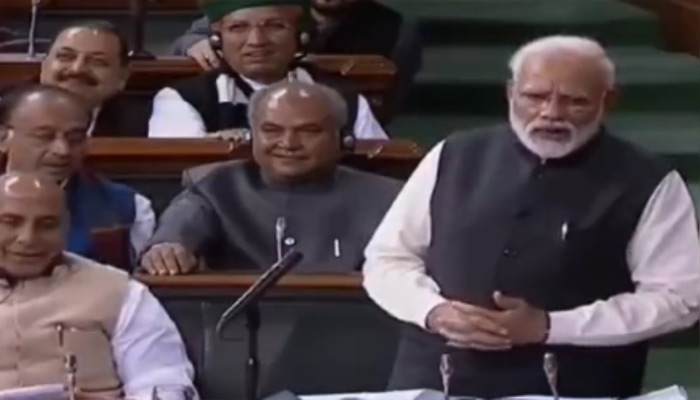 Responding to an opposition member, PM Modi said it was the consequence of arrogance that the Congress’ tally fell from over 400 at one time to nearly 40 in the 2014 Lok Sabha polls.