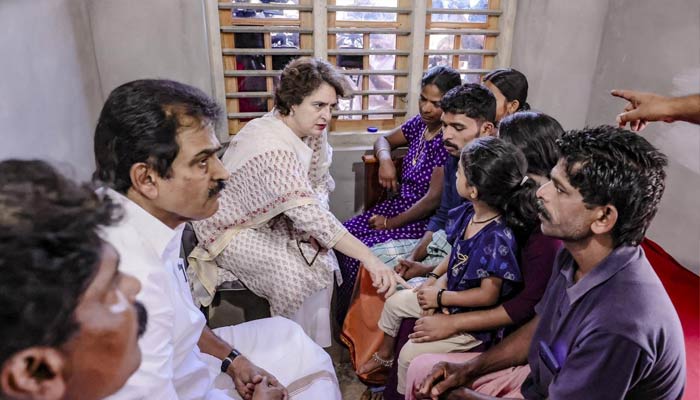 Congress MP Priyanka Gandhi visited Wayanad, Kerala, on Tuesday to meet the family of Radha, who was killed in a recent tiger attack in Kaniyaram, Mananthavady.