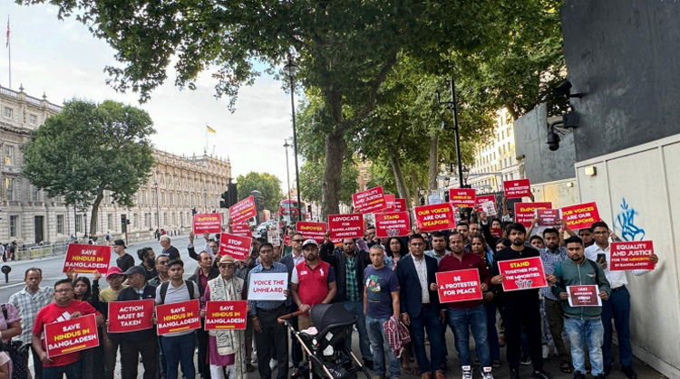 London witnessed a significant protest today as hundreds of Indian and Bangladeshi diaspora members  gathered to highlight the grievances of Hindus in Bangladesh and the ongoing human rights violations in the country.
