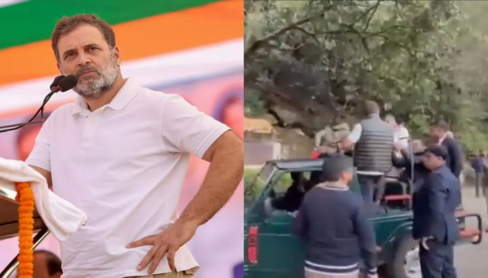 Rahul Gandhi arrived in Pachmarhi, a hill town in Narmadapuram district, on Saturday to attend a training camp for Madhya Pradesh Congress district presidents. On Sunday morning, he went on a jungle safari in an open jeep, leaving Ravishankar Bhavan around 6:15 a.m. and travelling about 10 km to the Panarpani Gate before returning.