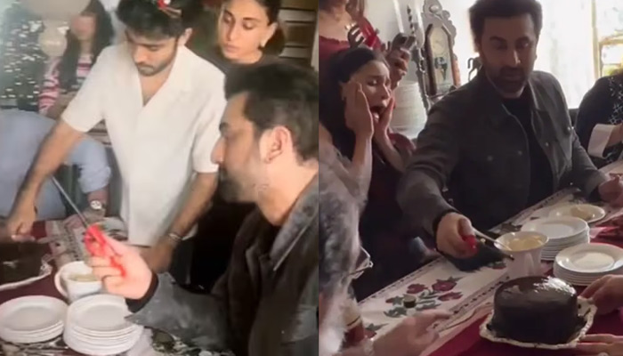 Kunal Kapoor can be seen sitting in front of the Christmas cake while Zahan Kapoor, who made his debut with ‘Faraaz’ earlier this year, pours wine over it. After he is done, Ranbir Kapoor lights up the cake and says ‘Jai Mata Di’.