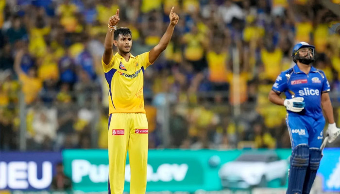 Mathisa Pathirana made an immediate impact in the eighth over, dismissing Ishan Kishan and then Suryakumar Yadav, crucial breakthroughs after Rohit and Kishan had built a solid partnership. But Pathirana’s influence extended beyond that, as he returned later to dismantle MI’s big-hitters, Tim David and Romario Shepherd, denying them crucial boundaries in the final overs.