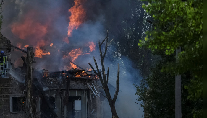 Klitschko added that a fire broke out after falling drone debris hit a seven-storey non-residential building in the Solomyanskyi district west of the city. The district is a busy rail and air transport hub.