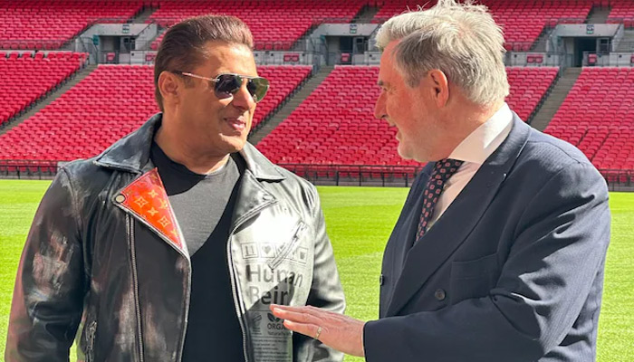 UK MP from Brent North constituency Barry Gardiner shared photos with Salman on X (formerly Twitter), taken at Wembley Stadium. In the pictures, they stood inside Wembley Stadium, chatting and posing for the camera. Salman wore a black T-shirt, jacket, jeans, dark sunglasses and black shoes.