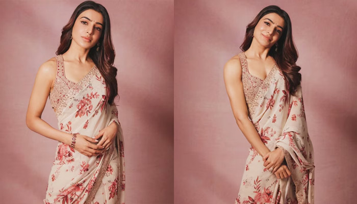 Styled by Open House Studio, Samantha paired the saree with a V-neck silk blouse featuring traditional pitta embroidery — a delicate handwork technique using metallic threads that are flattened to create a radiant sheen. The look was further elevated with heritage jewellery from Jaipur-based label Sunita Shekhawat, including an uncut diamond necklace, handcrafted kada, and matching earrings.