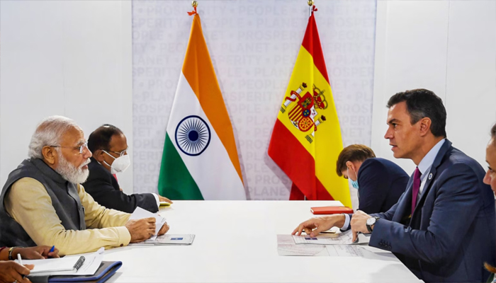 Sanchez’s flight landed at the Vadodara airport around 1.30 am as he began his maiden official visit to India. He is scheduled to visit Mumbai on Tuesday before returning to Spain. Sanchez will join Prime Minister Narendra Modi in a roadshow before jointly inaugurating the Tata Advanced Systems Limited (TASL) facility in Vadodara on Monday morning.