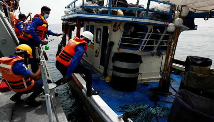 The group, including 25 children, were taken to Sri Lanka’s eastern port of Trincomalee, a navy spokesman said, adding that food and water had been provided. “Medical checks have to be done before they are allowed to disembark,” the spokesman said.