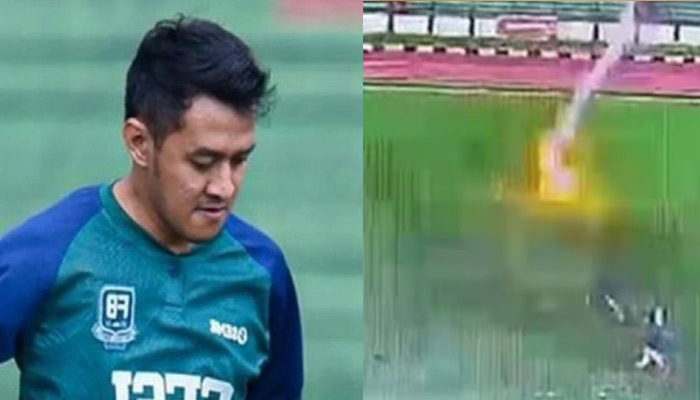 The distressing event was reported across the Indonesian media on Monday, 12 February. The incident was captured in a video from the stands, the player – isolated in the field – can be seen getting struck by lightning.