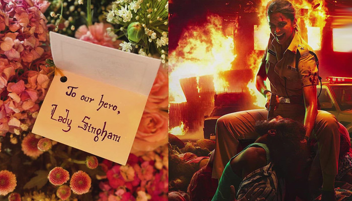 Deepika Padukone is Rohit Shetty’s Lady Singham. The actor recently shot for a sequence in the film, wearing a cop’s uniform. The actor was presented with a beautiful bouquet by the film’s team. In it, was a note that mentioned, “To our hero, Lady Singham”.