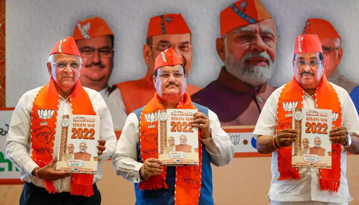 The document, named BJP Praja Pranalike, was released in Bengaluru today by the party’s national president JP Nadda. Chief Minister Basavaraj S Bommai and veteran party leader BS Yediyurappa were also present on the occasion, among others.