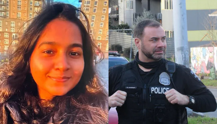 Jaahnavi Kandula, 23, was struck by a police vehicle driven by Seattle Police Officer Kevin Dave as she was crossing a street on January 23. Dave was driving 74 mph (more than 119 kmh) on the way to a report of a drug overdose call. Kandula was thrown 100 feet when she was struck by the speeding police patrol vehicle.