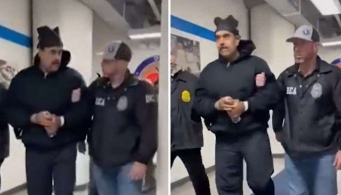The United States carried out a strike in Caracas on Saturday, capturing Venezuelan President Nicolás Maduro and his wife. Footage from a US agency office in New York shows Maduro handcuffed, briefly addressing the camera to wish viewers a “Happy New Year.”