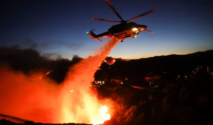 Witnesses reported a number homes on fire with flames nearly scorching their cars when people fled the hills of Topanga Canyon, as the fire spread from there down to the Pacific Ocean. “We feel very blessed at this point that there’s no injuries that are reported,” Los Angeles Fire Chief Kristin Crowley told a press conference, adding that more than 25,000 people in 10,000 homes were threatened.