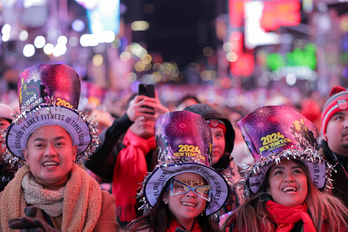 China celebrated relatively quietly, with most major cities banning fireworks over safety and pollution concerns. Still, people gathered and performers danced in colorful costumes in Beijing, while a crowd released wish balloons in Chongqing. During his New Year address, Chinese President Xi Jinping said the country would focus on building momentum for economic recovery in 2024 and pledged China would “surely be reunified” with Taiwan.
